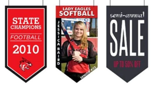 Each pole banner includes top and bottom pole pockets and corner grommets.